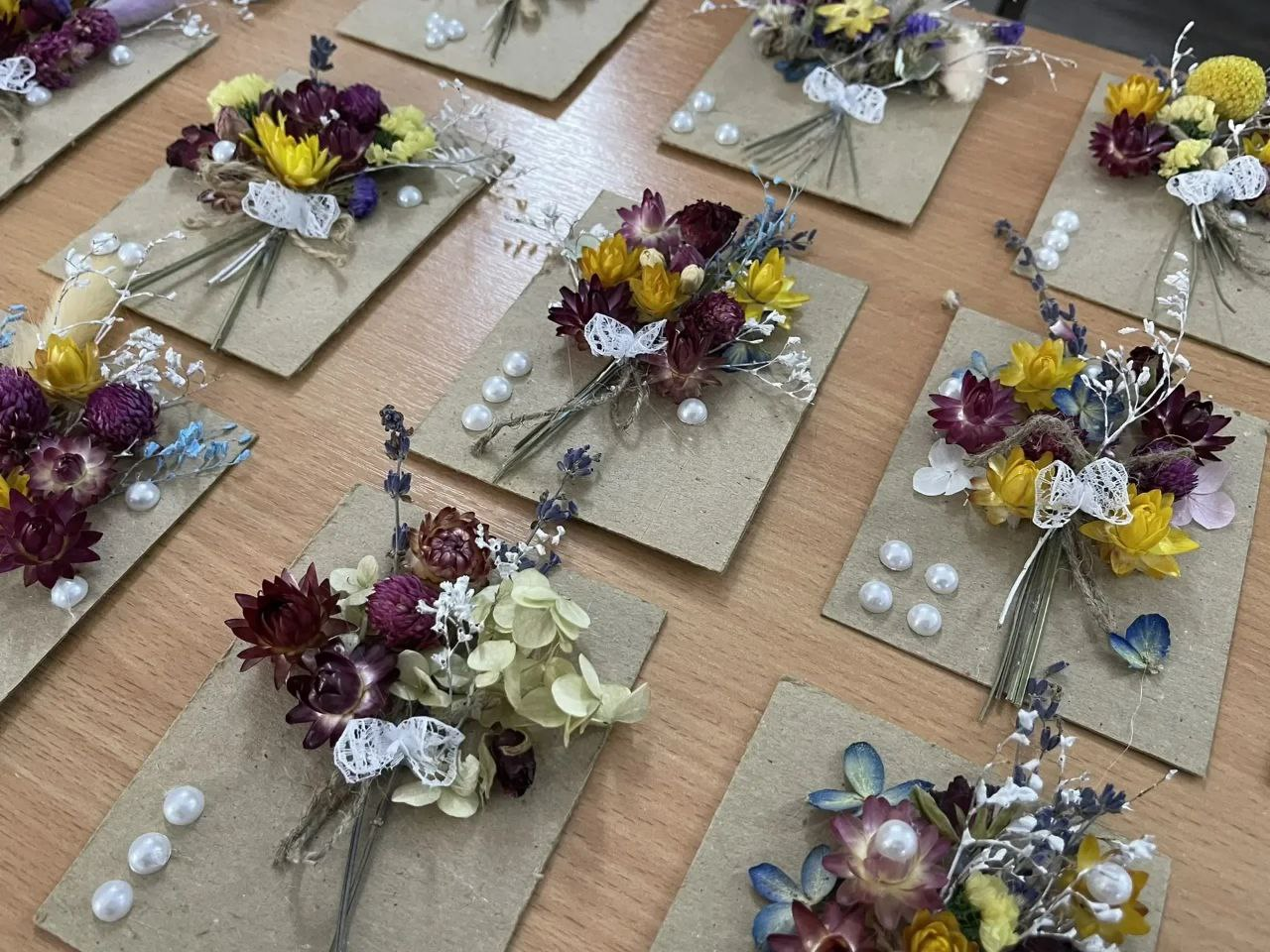 — открытки ручной работы с сухоцветами.